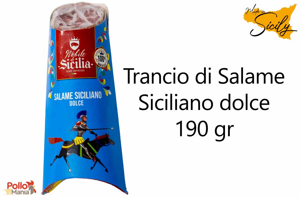 Salame siciliano dolce, dalle sapienti maestranze norcine dell’entroterra siciliano nascono i nostri salumi. Prodotti tipici dell’enogastronomia sicula adatti a tutti i tipi di palato. Ottimo per rendere sfiziosi ed unici antipasti ed aperitivi con gli amici.